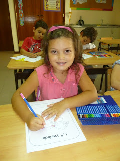 O primeiro dia de aulas foi um dia cheio de novidades. Conhecemos a escola, a professora, os colegas da turma, os meninos das outras salas, as irmãs e as funcionárias. Brincamos mas também trabalhamos.