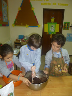 O mês de janeiro é muito especial para os alunos salesianos pois é o mês de D.Bosco. E na nossa escola levamos tudo muito a sério, os momentos para estudar e aprender, para rezar e para festejar. Uma das tradições mais importantes da nossa escola é "os bolinhos de D. Bosco". Todos os alunos fazem bolinhos com as professoras para o lanche da festa de D. Bosco no dis 31 deste mês. E nós fizemos salame de chocolate! Que cheirinho bom estava na nossa sala! Que vontade de dar umas trincas... Quinta-feira vamos atacar e provar os nossos bolinhos!
