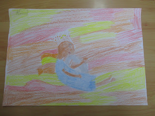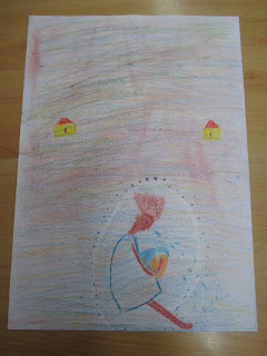 Depois de lermos "O beijo da palavrinha" de Mia Couto desenhamos a Maria Poeirinha, a personagem principal da história.